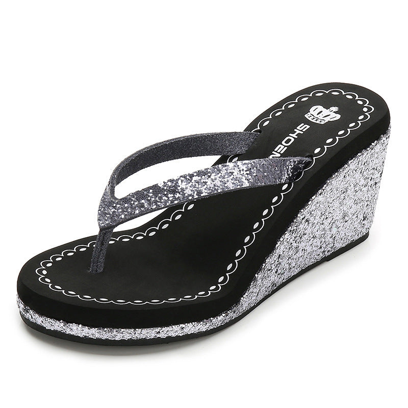 Summer Sequins Rhinestone Women's High Heel Slippers